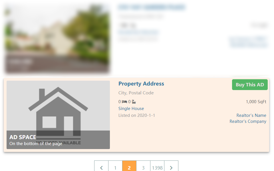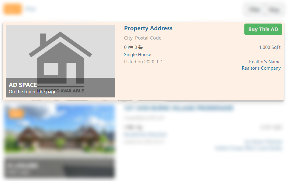 The bottom listing advertisement spots on the MLS® search pages. No matter which page the customers are on, the advertising listings will stand out among the plenty of MLS® listings. It helps you increase the exposure of your listing property.