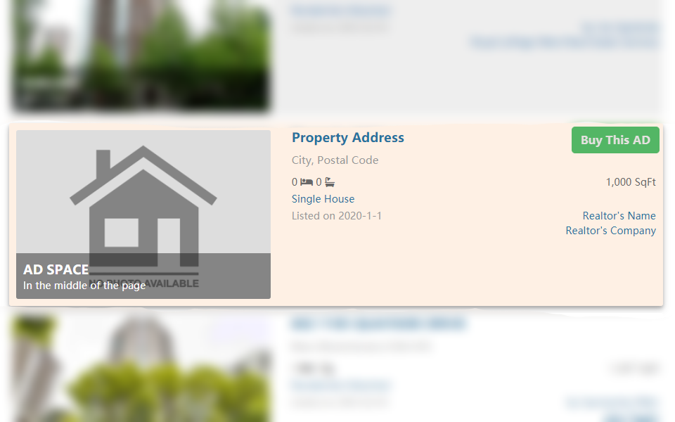 The middle listing advertisement spots on the MLS® search pages. No matter which page the customers are on, the advertising listings will stand out among the plenty of MLS® listings. It helps you increase the exposure of your listing property.